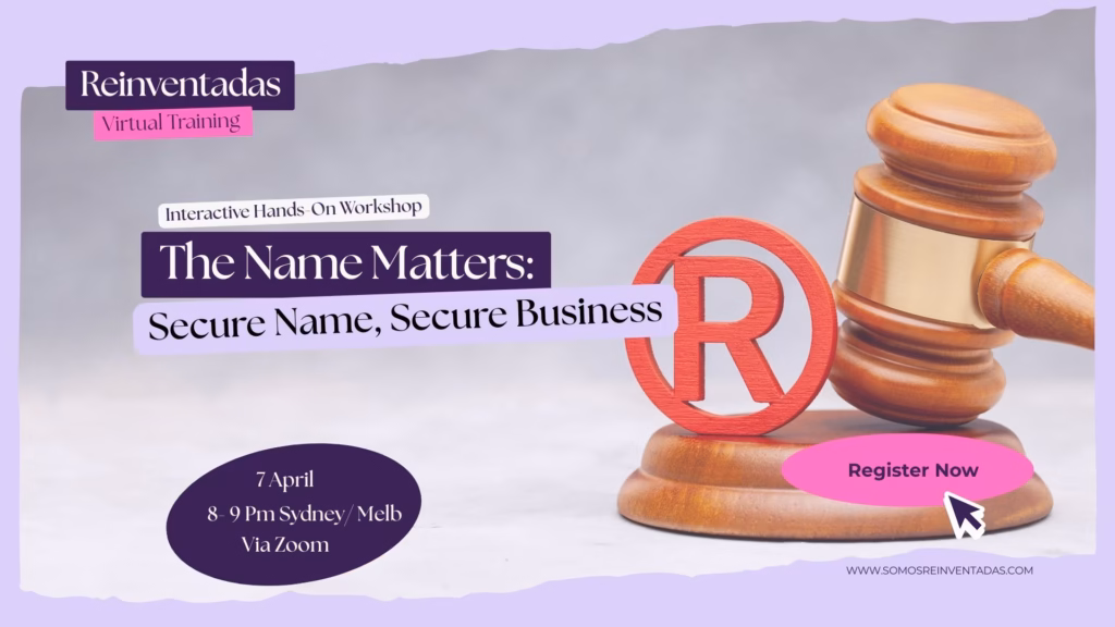 Elegir un nombre para tu negocio puede ser emocionante… pero también riesgoso si no sabes cómo protegerlo legalmente. Muchas emprendedoras invierten tiempo, dinero y esfuerzo en un nombre, un logo o packaging, solo para descubrir que no pueden registrarlo como marca en Australia. 😱